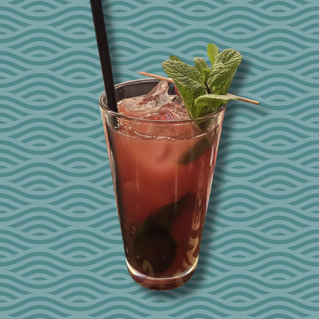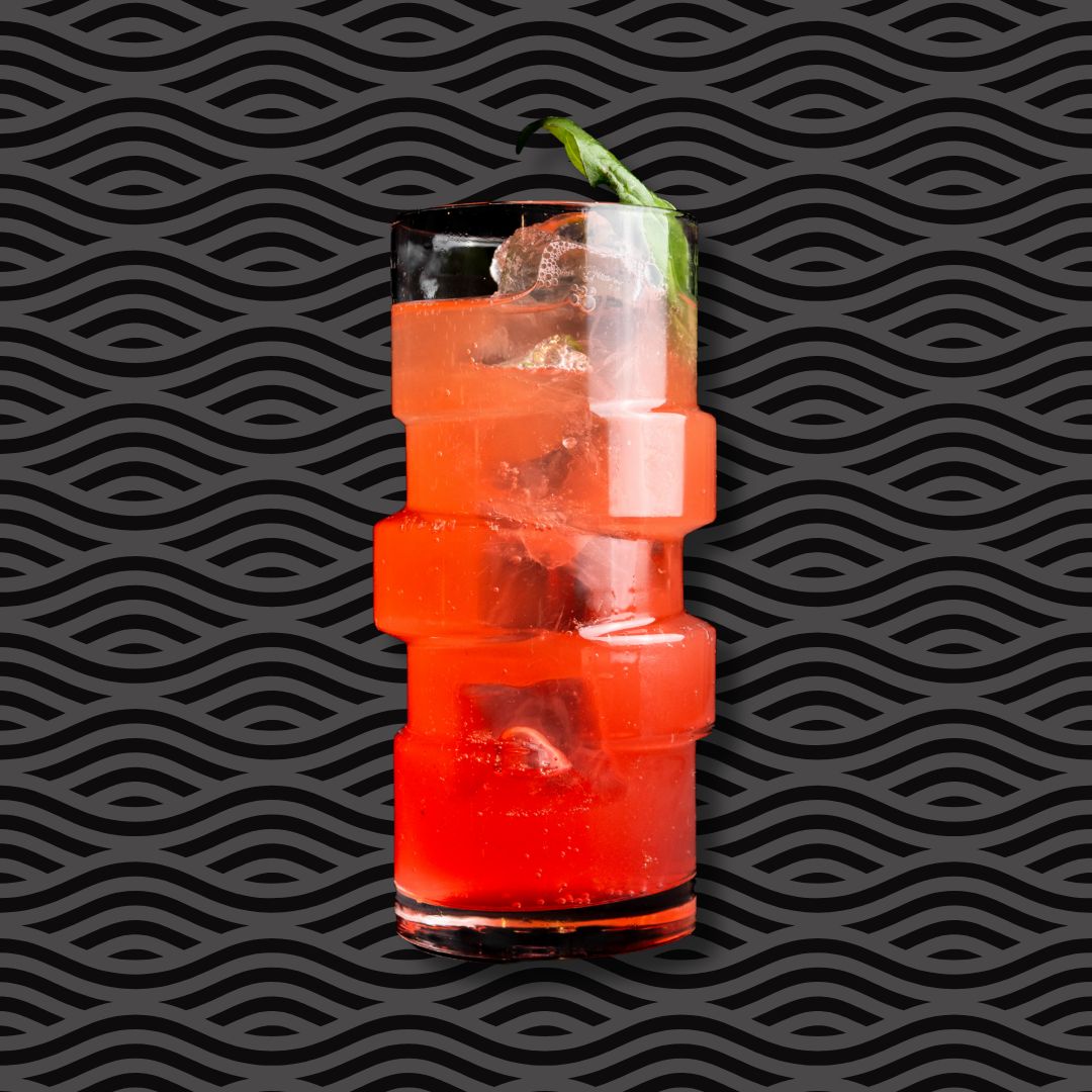 Tanqueray 00, succo di limone, sciroppo di zucchero, lamponi freschi e basilico